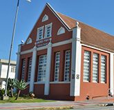 A Biblioteca foi instalada num prédio histórico de arquitetura germânica da década de 1920, tombado por meio do Decreto n° 5.910 de 27 de abril de 1999, situado na Praça da Bíblia, esquina da Rua Heitor Liberato com a Avenida José Eugênio Müller denominado “Fábrica de Tecidos Renaux”. Definido como prédio ideal para implantação da Biblioteca Pública Municipal e Escolar, em parceria com a Petrobras, recebeu reforma para as adequações necessárias ao seu funcionamento.