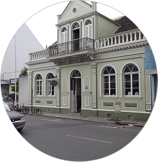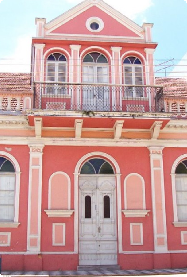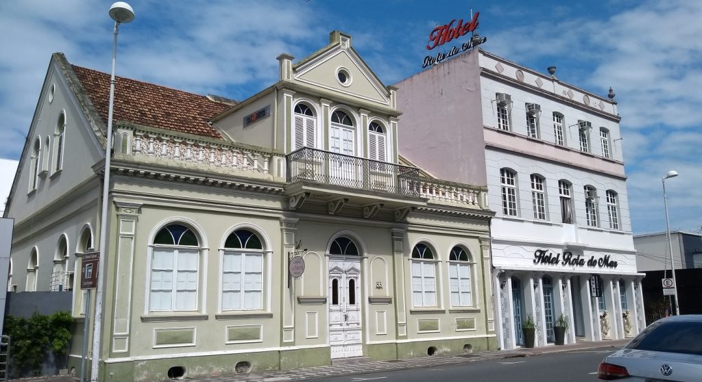 Localizada na Rua Lauro Müller, 83, a edificação compõe um conjunto arquitetônico que documenta o surto desenvolvimentista entre o final do século XIX e início do XX. Os edifícios que compõe este conjunto são ecléticos, ligados a atividade portuária que ali se desenvolveu pela valorização da Erva Mate e da Madeira, e apresentam características de influência alemã e italiana. Esta edificação em especifica guarda traços neoclássicos, marcado pelas colunatas, frontão reto na fachada principal e arcos plenos de suas aberturas. O eixo de simetria é reforçado pela mansarda que se estende até o alinhamento da fachada, possuindo uma sacada de gradis ferro.